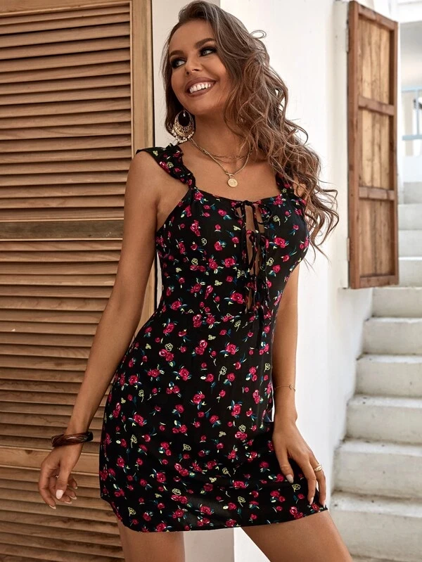 SHEIN فستان بأكمام مفتوح بطباعة فهد